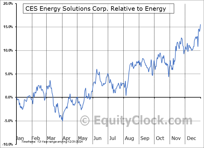 Analysis of the CES Energy Solutions Corp. (OTCMKT:CESDF) seasonal charts above shows that a Buy Date of August 8 and a Sell Date of January 4 has resulted in a geometric average return of 2.44% above the benchmark rate of the S&P 500 Total Return Index over the past 13 years. This seasonal timeframe has shown positive results compared to the benchmark in 9 of those periods. This is a good rate of success and the return strongly outperforms the relative buy-and-hold performance of the stock over the past 13 years by an average of 9.94% per year.