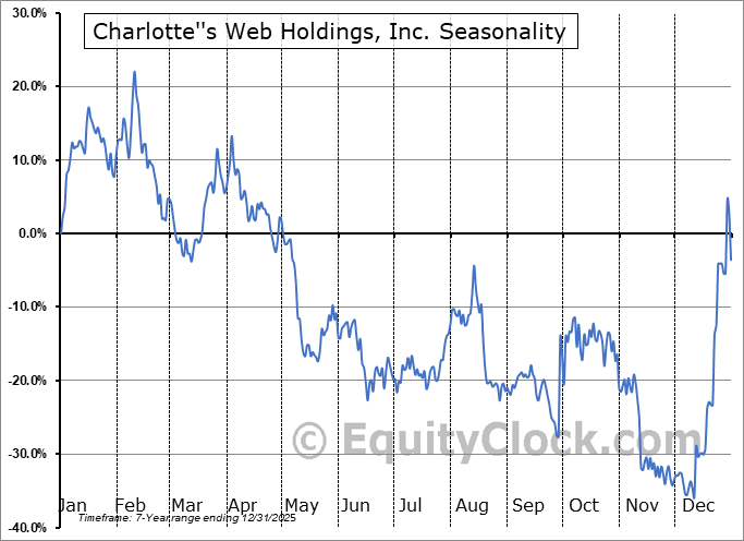 Charlotte”s Web Holdings, Inc. (TSE:CWEB.TO) Seasonal Chart