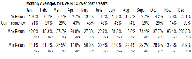 To download CWEB.TO seasonal chart data, please log in or Subscribe.