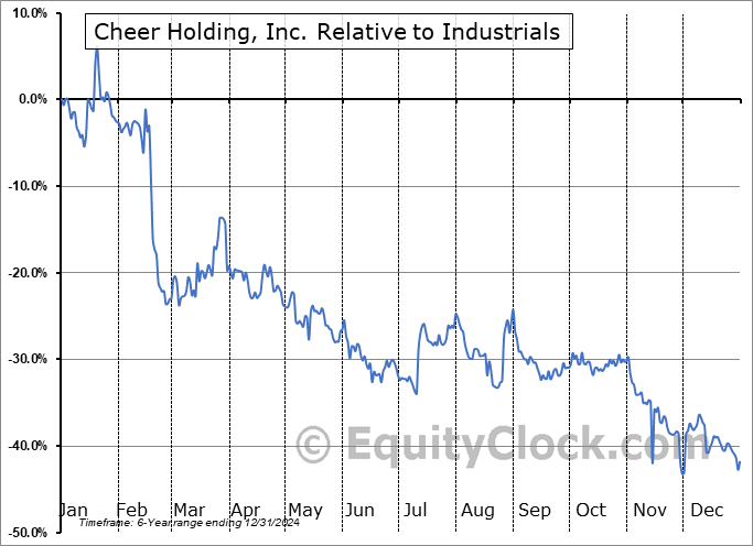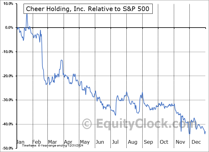 Analysis of the Cheer Holding, Inc. (NASD:CHR) seasonal charts above shows that a Buy Date of February 27 and a Sell Date of June 2 has resulted in a geometric average return of 1.76% above the benchmark rate of the S&P 500 Total Return Index over the past 6 years. This seasonal timeframe has shown positive results compared to the benchmark in 3 of those periods. This is a poor rate of success and the return strongly outperforms the relative buy-and-hold performance of the stock over the past 6 years by an average of 55.5% per year.