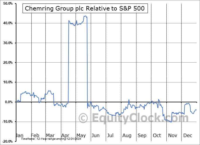 Analysis of the Chemring Group plc (OTCMKT:CMGMY) seasonal charts above shows that a Buy Date of July 12 and a Sell Date of October 9 has resulted in a geometric average return of 6.76% above the benchmark rate of the S&P 500 Total Return Index over the past 12 years. This seasonal timeframe has shown positive results compared to the benchmark in 10 of those periods. This is a very good rate of success and the return strongly outperforms the relative buy-and-hold performance of the stock over the past 12 years by an average of 16.92% per year.