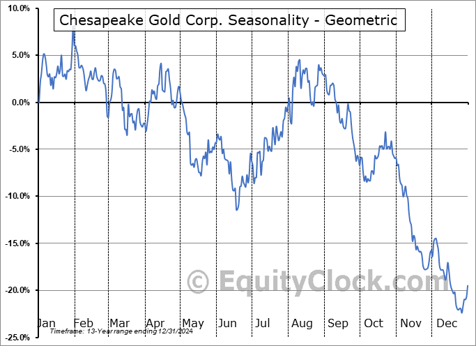 Chesapeake Gold Corp. (OTCMKT:CHPGF) Seasonal Chart