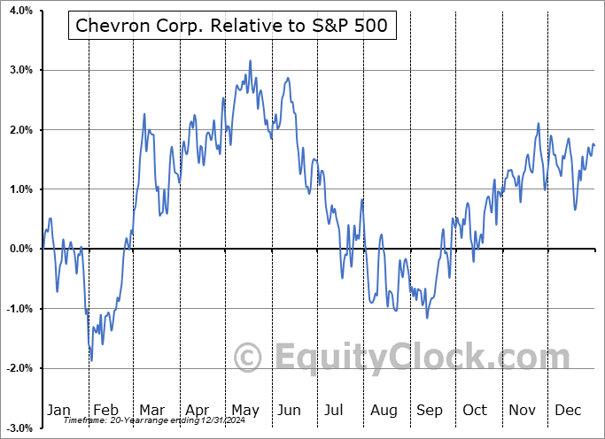 Analysis of the Chevron Corp. (NYSE:CVX) seasonal charts above shows that a Buy Date of September 11 and a Sell Date of December 14 has resulted in a geometric average return of 2.81% above the benchmark rate of the S&P 500 Total Return Index over the past 20 years. This seasonal timeframe has shown positive results compared to the benchmark in 14 of those periods. This is a good rate of success and the return strongly outperforms the relative buy-and-hold performance of the stock over the past 20 years by an average of 3.76% per year.