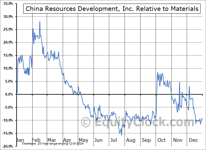 Analysis of the China Resources Development, Inc. (NASD:CHNR) seasonal charts above shows that a Buy Date of June 23 and a Sell Date of October 9 has resulted in a geometric average return of 0.74% above the benchmark rate of the S&P 500 Total Return Index over the past 20 years. This seasonal timeframe has shown positive results compared to the benchmark in 12 of those periods. This is a fair rate of success and the return strongly outperforms the relative buy-and-hold performance of the stock over the past 20 years by an average of 25.26% per year.