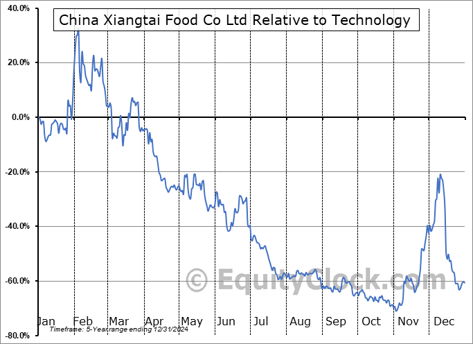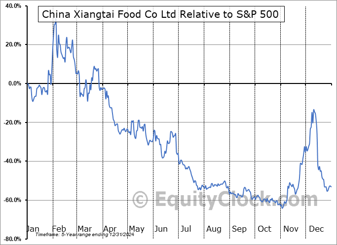 Analysis of the China Xiangtai Food Co Ltd (NASD:BTOG) seasonal charts above shows that a Buy Date of November 7 and a Sell Date of February 3 has resulted in a geometric average return of 41.16% above the benchmark rate of the S&P 500 Total Return Index over the past 5 years. This seasonal timeframe has shown positive results compared to the benchmark in 4 of those periods. This is a very good rate of success and the return strongly outperforms the relative buy-and-hold performance of the stock over the past 5 years by an average of 107.38% per year.