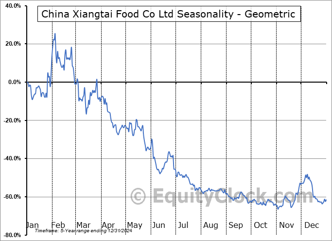 China Xiangtai Food Co Ltd (NASD:BTOG) Seasonal Chart