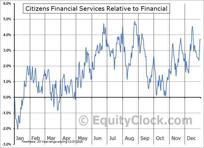 The seasonal timeframe is Inline with the period of seasonal strength for the Financial sector, which runs from November 22 to April 13. The seasonal chart for the broad sector is available via the following link: Financial Sector Seasonal Chart.