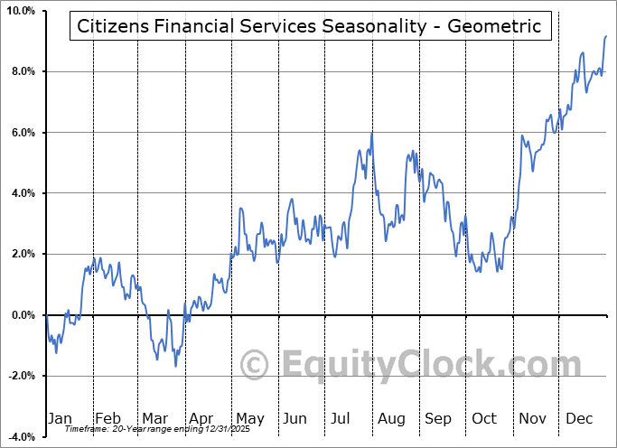 Analysis of the Citizens Financial Services (NASD:CZFS) seasonal charts above shows that a Buy Date of October 21 and a Sell Date of February 5 has resulted in a geometric average return of 5.3% above the benchmark rate of the S&P 500 Total Return Index over the past 20 years. This seasonal timeframe has shown positive results compared to the benchmark in 16 of those periods. This is a very good rate of success and the return strongly outperforms the relative buy-and-hold performance of the stock over the past 20 years by an average of 6.7% per year.
