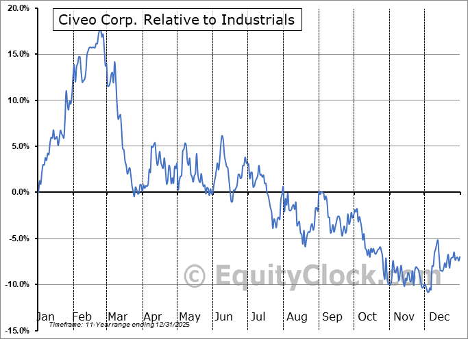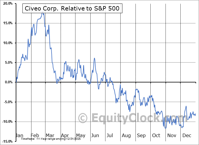 Analysis of the Civeo Corp. (NYSE:CVEO) seasonal charts above shows that a Buy Date of December 16 and a Sell Date of March 7 has resulted in a geometric average return of 7.45% above the benchmark rate of the S&P 500 Total Return Index over the past 11 years. This seasonal timeframe has shown positive results compared to the benchmark in 9 of those periods. This is a very good rate of success and the return strongly outperforms the relative buy-and-hold performance of the stock over the past 11 years by an average of 24.24% per year.