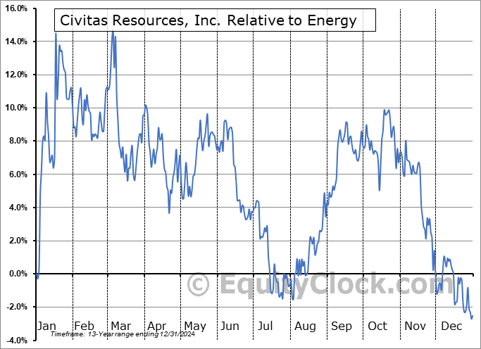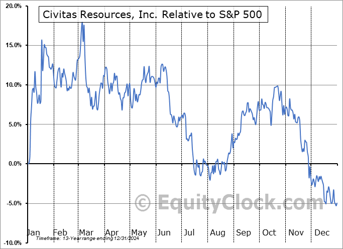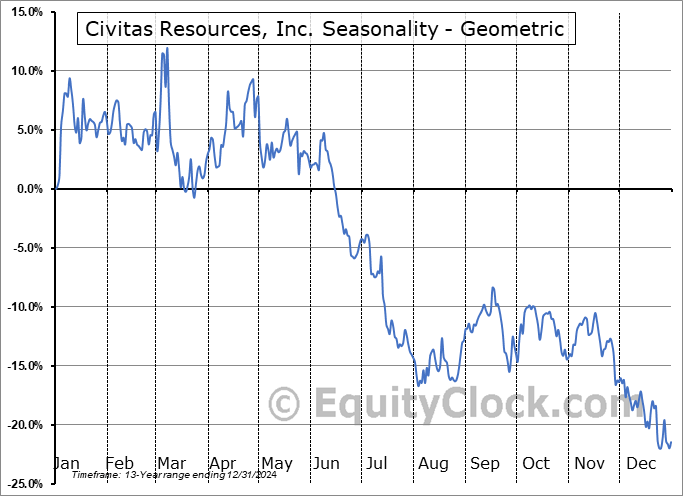 Analysis of the Civitas Resources, Inc. (NYSE:CIVI) seasonal charts above shows that a Buy Date of January 25 and a Sell Date of April 24 has resulted in a geometric average return of 0.87% above the benchmark rate of the S&P 500 Total Return Index over the past 13 years. This seasonal timeframe has shown positive results compared to the benchmark in 11 of those periods. This is a very good rate of success and the return strongly outperforms the relative buy-and-hold performance of the stock over the past 13 years by an average of 32.91% per year.