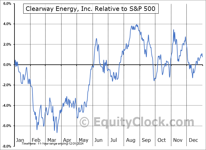Analysis of the Clearway Energy, Inc. (NYSE:CWEN/A) seasonal charts above shows that a Buy Date of February 13 and a Sell Date of June 8 has resulted in a geometric average return of 8.33% above the benchmark rate of the S&P 500 Total Return Index over the past 11 years. This seasonal timeframe has shown positive results compared to the benchmark in 9 of those periods. This is a very good rate of success and the return strongly outperforms the relative buy-and-hold performance of the stock over the past 11 years by an average of 12.94% per year.