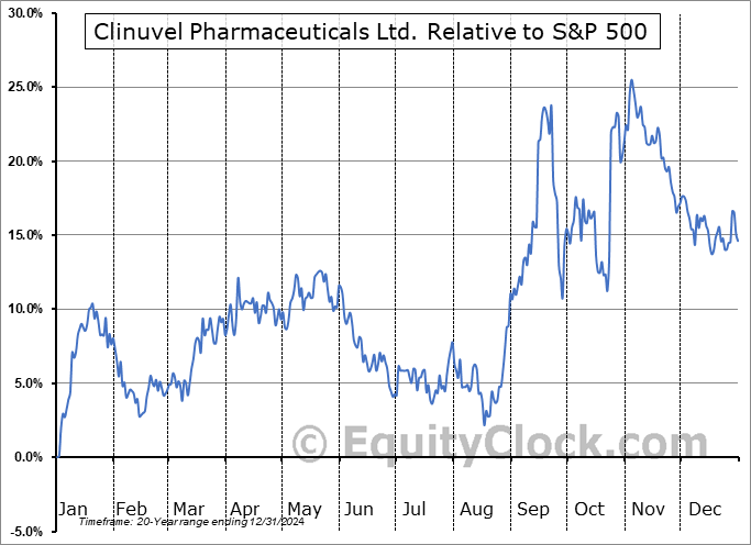 Analysis of the Clinuvel Pharmaceuticals Ltd. (OTCMKT:CLVLY) seasonal charts above shows that a Buy Date of September 28 and a Sell Date of January 13 has resulted in a geometric average return of 5.8% above the benchmark rate of the S&P 500 Total Return Index over the past 20 years. This seasonal timeframe has shown positive results compared to the benchmark in 13 of those periods. This is a good rate of success and the return strongly outperforms the relative buy-and-hold performance of the stock over the past 20 years by an average of 14.46% per year.