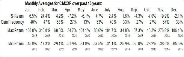 CMC Metals Ltd. (OTCMKT:CMCXF) Seasonal Chart