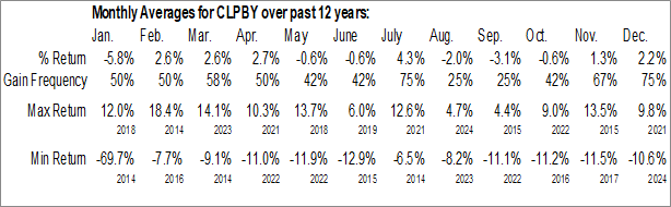 To download CLPBY seasonal chart data, please log in or Subscribe.