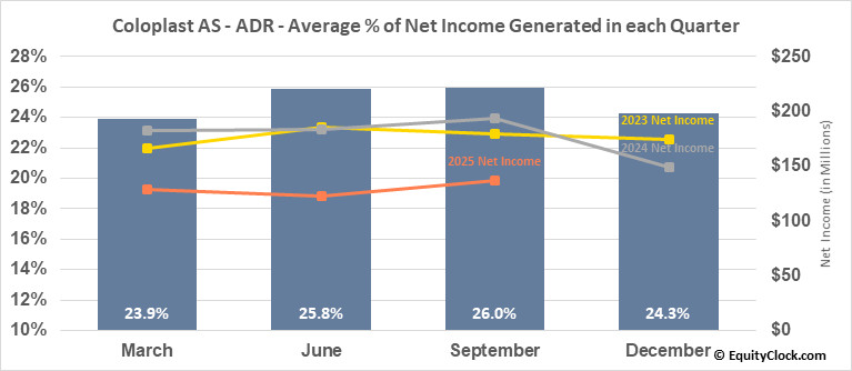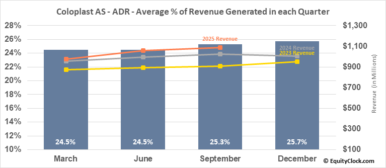 Coloplast AS – ADR (OTCMKT:CLPBY) Seasonal Chart