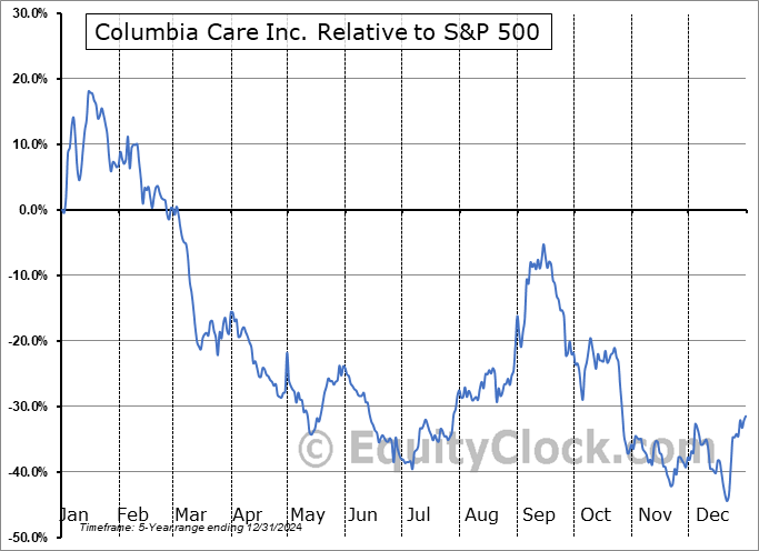 Analysis of the Columbia Care Inc. (OTCMKT:CBSTF) seasonal charts above shows that a Buy Date of June 26 and a Sell Date of September 18 has resulted in a geometric average return of 37.2% above the benchmark rate of the S&P 500 Total Return Index over the past 5 years. This seasonal timeframe has shown positive results compared to the benchmark in 4 of those periods. This is a very good rate of success and the return strongly outperforms the relative buy-and-hold performance of the stock over the past 5 years by an average of 95.18% per year.
