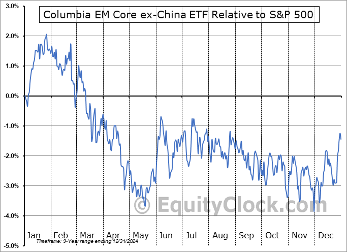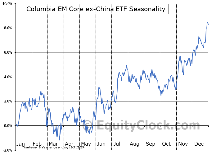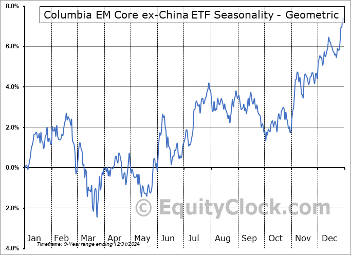 Columbia EM Core ex-China ETF (AMEX:XCEM) Seasonal Chart