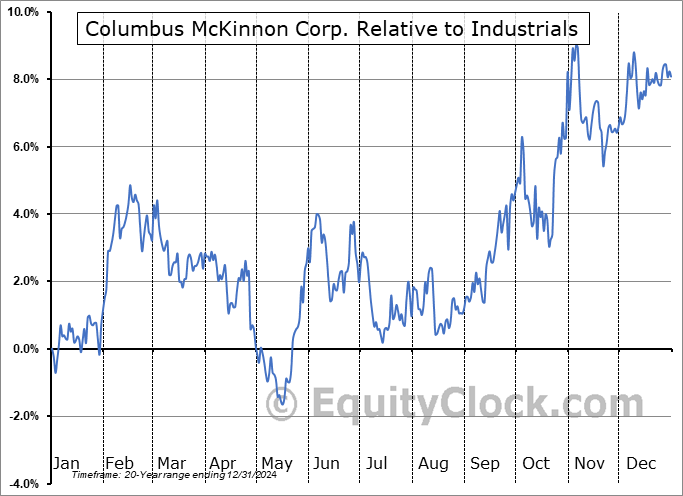 The seasonal timeframe is Inline with the period of seasonal strength for the Industrials sector, which runs from October 29 to May 10. The seasonal chart for the broad sector is available via the following link: Industrials Sector Seasonal Chart.