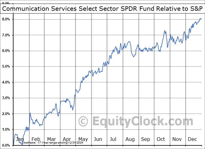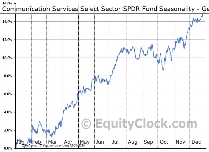 Analysis of the Communication Services Select Sector SPDR Fund (NYSE:XLC) seasonal charts above shows that a Buy Date of January 18 and a Sell Date of June 2 has resulted in a geometric average return of 3.35% above the benchmark rate of the S&P 500 Total Return Index over the past 17 years. This seasonal timeframe has shown positive results compared to the benchmark in 16 of those periods. This is an excellent rate of success, but the return underperforms the relative buy-and-hold performance of the stock over the past 17 years by an average of 0.71% per year.