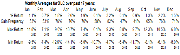 To download XLC seasonal chart data, please log in or Subscribe.