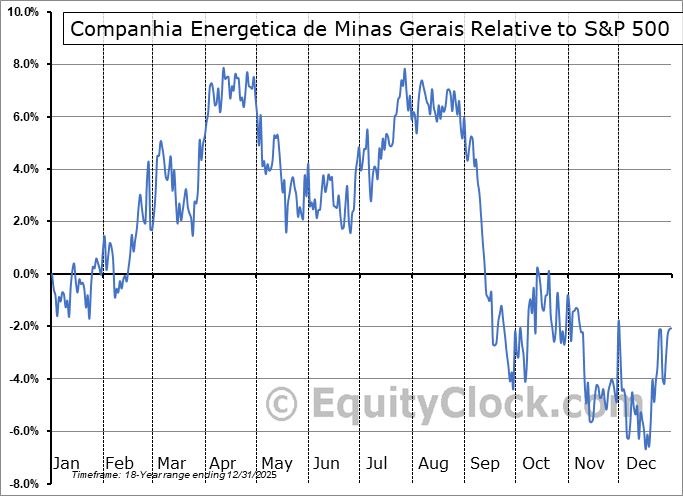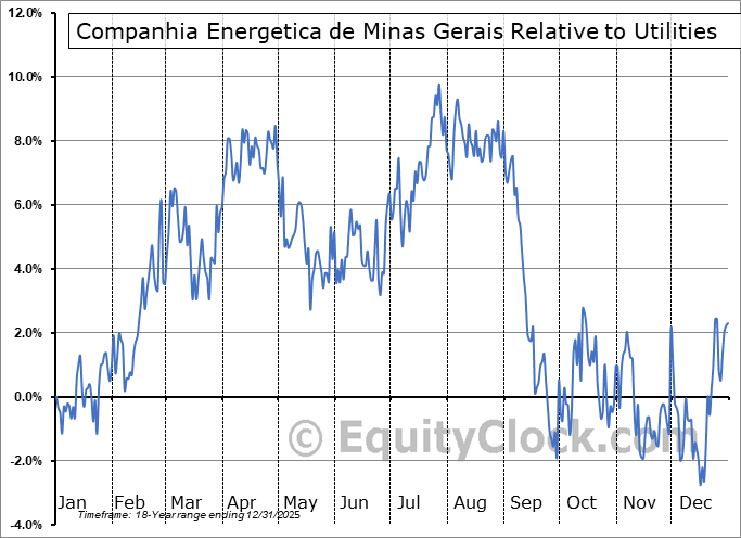 Analysis of the Companhia Energetica de Minas Gerais (Cemig) (NYSE:CIG/C) seasonal charts above shows that a Buy Date of January 23 and a Sell Date of May 3 has resulted in a geometric average return of 5.27% above the benchmark rate of the S&P 500 Total Return Index over the past 18 years. This seasonal timeframe has shown positive results compared to the benchmark in 14 of those periods. This is a good rate of success and the return strongly outperforms the relative buy-and-hold performance of the stock over the past 18 years by an average of 14.73% per year.