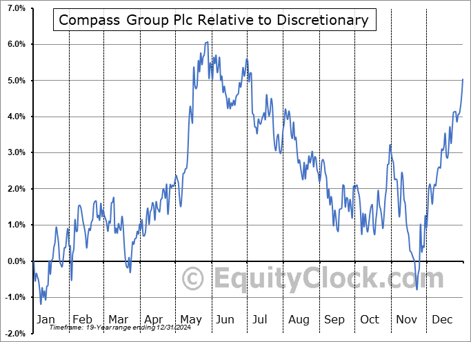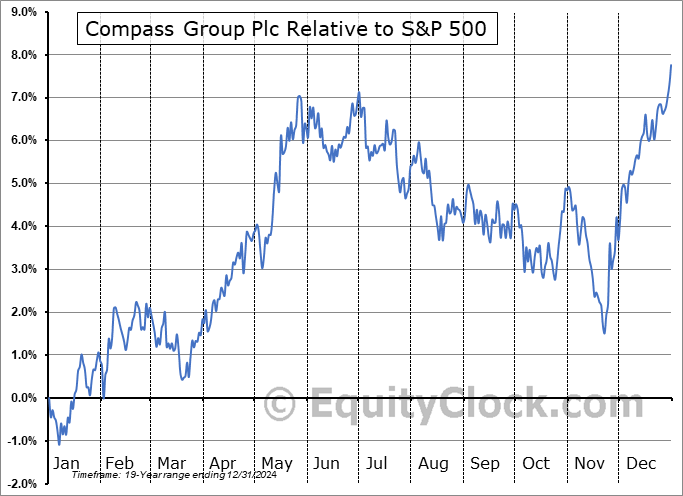 Analysis of the Compass Group Plc (OTCMKT:CMPGY) seasonal charts above shows that a Buy Date of November 21 and a Sell Date of February 9 has resulted in a geometric average return of 7.6% above the benchmark rate of the S&P 500 Total Return Index over the past 19 years. This seasonal timeframe has shown positive results compared to the benchmark in 17 of those periods. This is a very good rate of success and the return strongly outperforms the relative buy-and-hold performance of the stock over the past 19 years by an average of 3.21% per year.