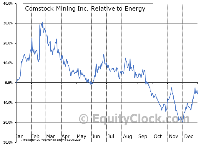 Analysis of the Comstock Mining Inc. (AMEX:LODE) seasonal charts above shows that a Buy Date of December 15 and a Sell Date of March 7 has resulted in a geometric average return of 12.67% above the benchmark rate of the S&P 500 Total Return Index over the past 20 years. This seasonal timeframe has shown positive results compared to the benchmark in 11 of those periods. This is a fair rate of success and the return strongly outperforms the relative buy-and-hold performance of the stock over the past 20 years by an average of 47.35% per year.