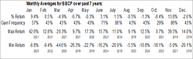 A word of caution: Only 7 years of data is available for shares of BBCP, perhaps insufficient to create a seasonal profile that accurately gauges the seasonal tendencies influencing the investment. Ideally, while 20 years is preferred, at least 10 years of data is required to perform a seasonal analysis that is considered to be reliable for future seasonal periods.
