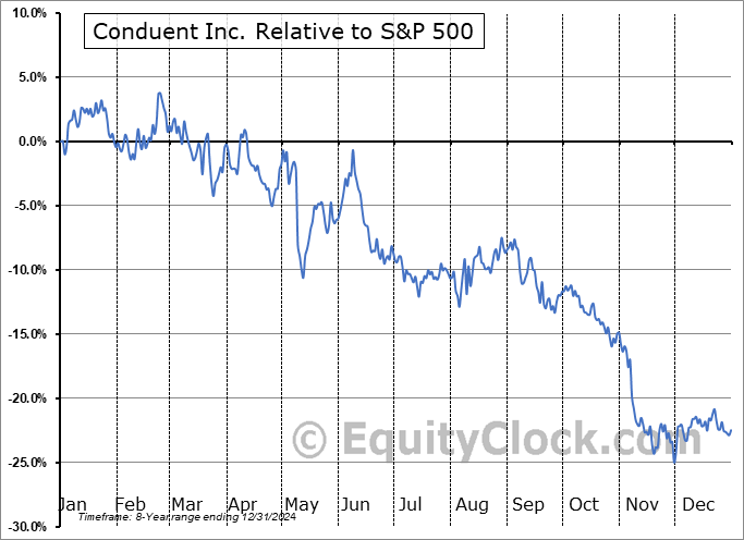 Analysis of the Conduent Inc. (NASD:CNDT) seasonal charts above shows that a Buy Date of March 18 and a Sell Date of June 8 has resulted in a geometric average return of 4.35% above the benchmark rate of the S&P 500 Total Return Index over the past 8 years. This seasonal timeframe has shown positive results compared to the benchmark in 6 of those periods. This is a good rate of success and the return strongly outperforms the relative buy-and-hold performance of the stock over the past 8 years by an average of 29.45% per year.