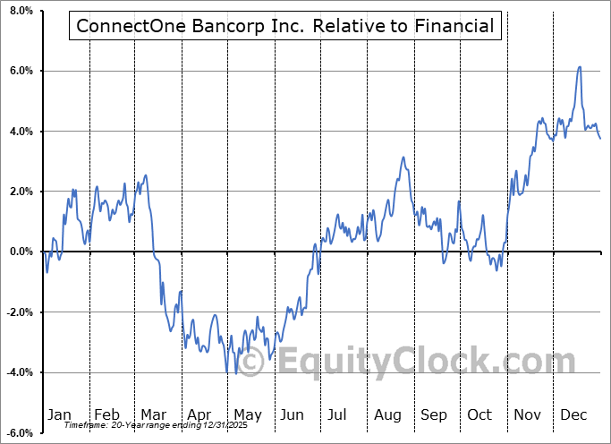 The seasonal timeframe correlates Poorly with the period of seasonal strength for the Financial sector, which runs from November 22 to April 13. The seasonal chart for the broad sector is available via the following link: Financial Sector Seasonal Chart.