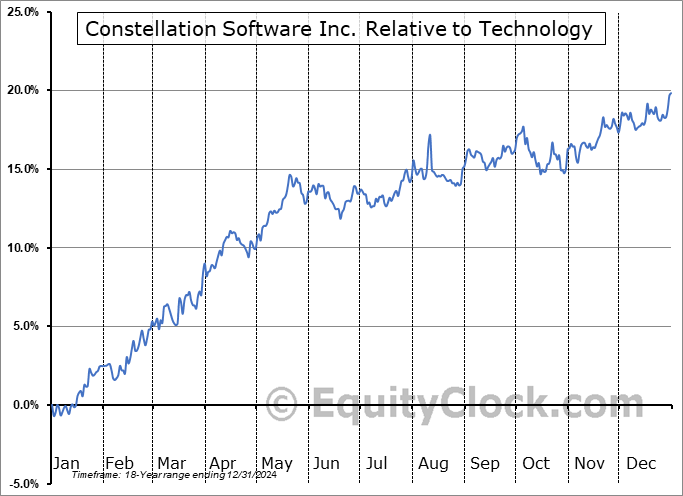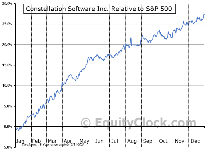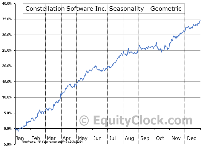 Analysis of the Constellation Software Inc. (OTCMKT:CNSWF) seasonal charts above shows that a Buy Date of March 18 and a Sell Date of August 10 has resulted in a geometric average return of 10.12% above the benchmark rate of the S&P 500 Total Return Index over the past 18 years. This seasonal timeframe has shown positive results compared to the benchmark in 18 of those periods. This is an excellent rate of success, but the return underperforms the relative buy-and-hold performance of the stock over the past 18 years by an average of 11.78% per year.