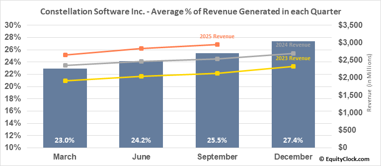 Constellation Software Inc. (OTCMKT:CNSWF) Seasonal Chart