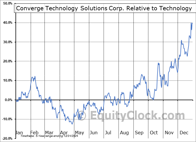 Analysis of the Converge Technology Solutions Corp. (OTCMKT:CTSDF) seasonal charts above shows that a Buy Date of November 10 and a Sell Date of February 9 has resulted in a geometric average return of 41.04% above the benchmark rate of the S&P 500 Total Return Index over the past 5 years. This seasonal timeframe has shown positive results compared to the benchmark in 5 of those periods. This is an excellent rate of success and the return strongly outperforms the relative buy-and-hold performance of the stock over the past 5 years by an average of 38.95% per year.