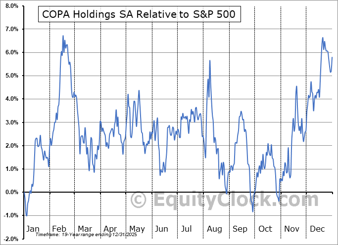 Analysis of the COPA Holdings SA (NYSE:CPA) seasonal charts above shows that a Buy Date of October 27 and a Sell Date of February 18 has resulted in a geometric average return of 14.75% above the benchmark rate of the S&P 500 Total Return Index over the past 18 years. This seasonal timeframe has shown positive results compared to the benchmark in 16 of those periods. This is a very good rate of success and the return strongly outperforms the relative buy-and-hold performance of the stock over the past 18 years by an average of 15.63% per year.
