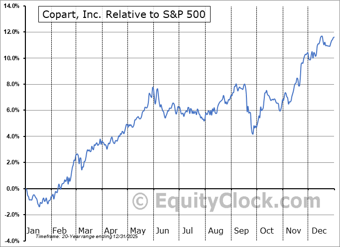 Analysis of the Copart, Inc. (NASD:CPRT) seasonal charts above shows that a Buy Date of October 28 and a Sell Date of March 1 has resulted in a geometric average return of 5.91% above the benchmark rate of the S&P 500 Total Return Index over the past 20 years. This seasonal timeframe has shown positive results compared to the benchmark in 18 of those periods. This is an excellent rate of success, but the return underperforms the relative buy-and-hold performance of the stock over the past 20 years by an average of 0.27% per year.