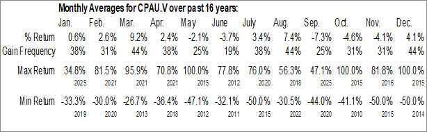 To download CPAU.V seasonal chart data, please log in or Subscribe.