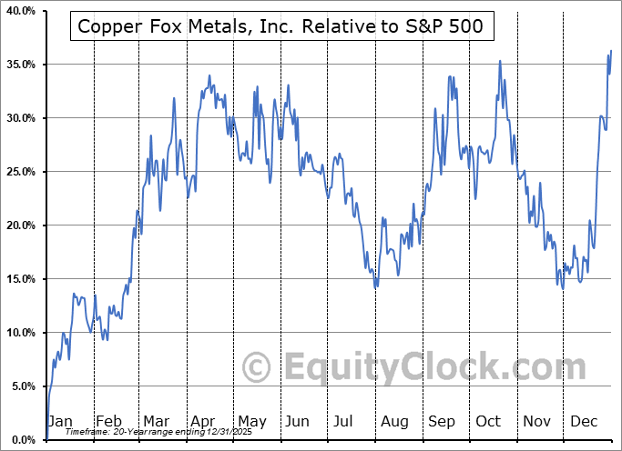 Analysis of the Copper Fox Metals, Inc. (TSXV:CUU.V) seasonal charts above shows that a Buy Date of December 10 and a Sell Date of March 19 has resulted in a geometric average return of 26.31% above the benchmark rate of the S&P 500 Total Return Index over the past 20 years. This seasonal timeframe has shown positive results compared to the benchmark in 15 of those periods. This is a good rate of success and the return strongly outperforms the relative buy-and-hold performance of the stock over the past 20 years by an average of 30.63% per year.