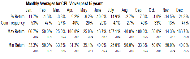 To download CPL.V seasonal chart data, please log in or Subscribe.
