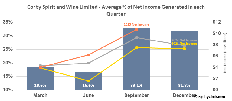 Corby Spirit and Wine Limited (TSE:CSW/B.TO) Seasonal Chart
