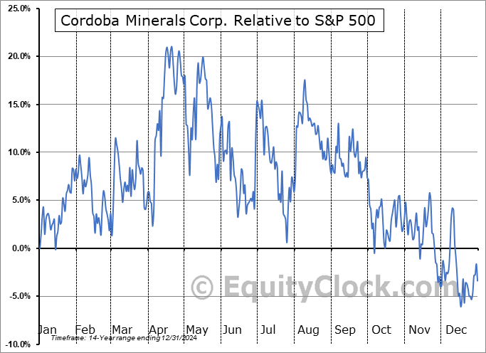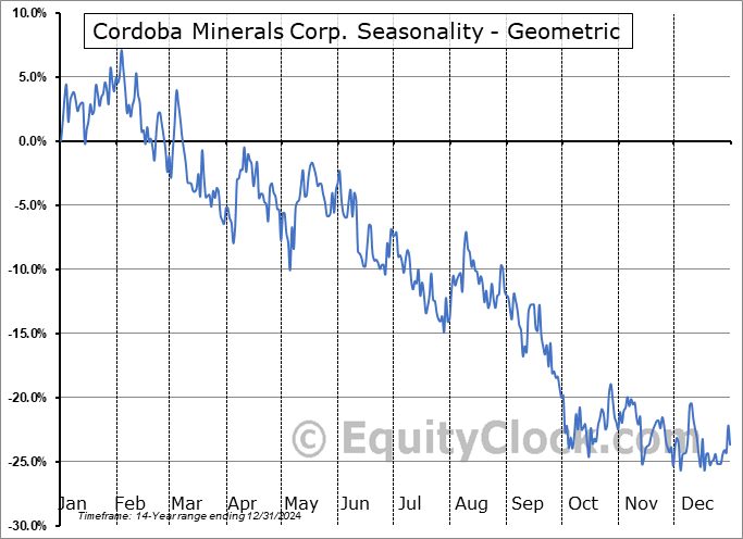 Cordoba Minerals Corp. (TSXV:CDB.V) Seasonal Chart