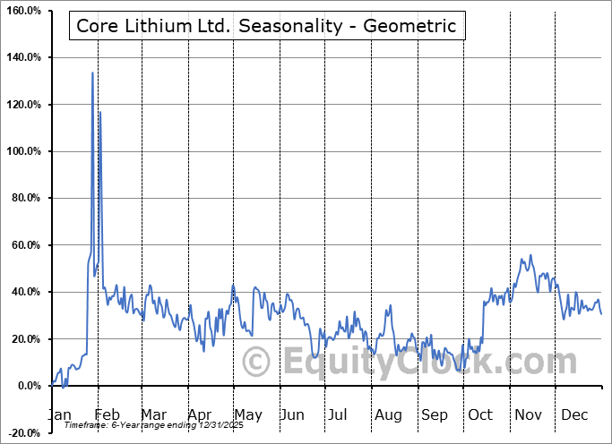 Analysis of the Core Lithium Ltd. (OTCMKT:CXOXF) seasonal charts above shows that a Buy Date of August 17 and a Sell Date of November 8 has resulted in a geometric average return of 33.87% above the benchmark rate of the S&P 500 Total Return Index over the past 6 years. This seasonal timeframe has shown positive results compared to the benchmark in 6 of those periods. This is an excellent rate of success and the return strongly outperforms the relative buy-and-hold performance of the stock over the past 6 years by an average of 20.18% per year.