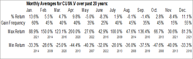To download CUSN.V seasonal chart data, please log in or Subscribe.