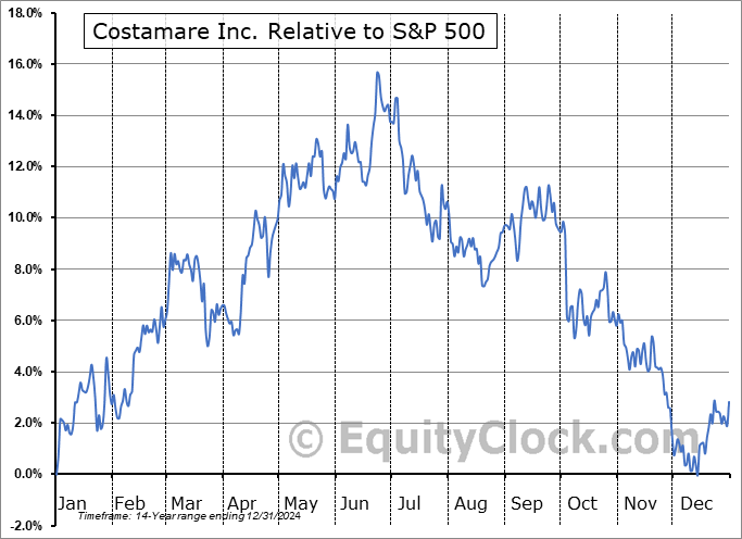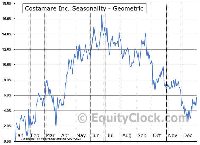 Analysis of the Costamare Inc. (NYSE:CMRE) seasonal charts above shows that a Buy Date of December 7 and a Sell Date of April 18 has resulted in a geometric average return of 9.63% above the benchmark rate of the S&P 500 Total Return Index over the past 14 years. This seasonal timeframe has shown positive results compared to the benchmark in 13 of those periods. This is an excellent rate of success and the return strongly outperforms the relative buy-and-hold performance of the stock over the past 14 years by an average of 16.54% per year.