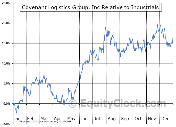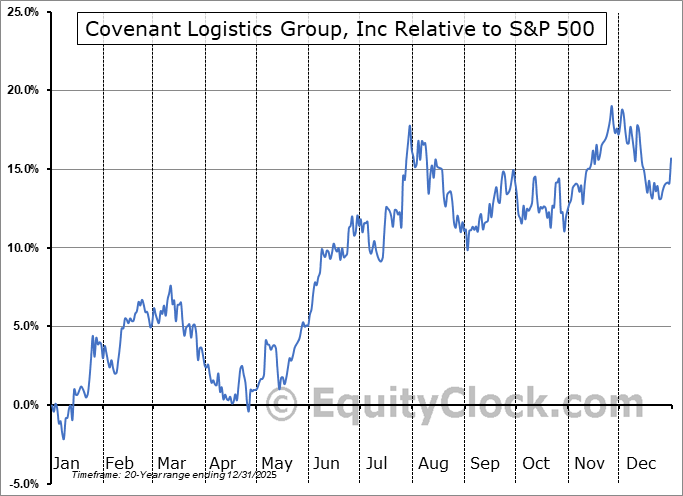 Analysis of the Covenant Logistics Group, Inc (NYSE:CVLG) seasonal charts above shows that a Buy Date of December 14 and a Sell Date of March 16 has resulted in a geometric average return of 7.43% above the benchmark rate of the S&P 500 Total Return Index over the past 20 years. This seasonal timeframe has shown positive results compared to the benchmark in 16 of those periods. This is a very good rate of success and the return strongly outperforms the relative buy-and-hold performance of the stock over the past 20 years by an average of 11.91% per year.