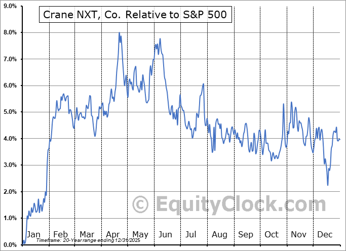 Analysis of the Crane NXT, Co. (NYSE:CXT) seasonal charts above shows that a Buy Date of January 10 and a Sell Date of April 21 has resulted in a geometric average return of 6.16% above the benchmark rate of the S&P 500 Total Return Index over the past 20 years. This seasonal timeframe has shown positive results compared to the benchmark in 18 of those periods. This is an excellent rate of success and the return strongly outperforms the relative buy-and-hold performance of the stock over the past 20 years by an average of 4.9% per year.