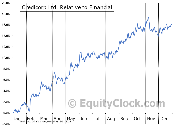 The seasonal timeframe is Inline with the period of seasonal strength for the Financial sector, which runs from November 22 to April 13. The seasonal chart for the broad sector is available via the following link: Financial Sector Seasonal Chart.