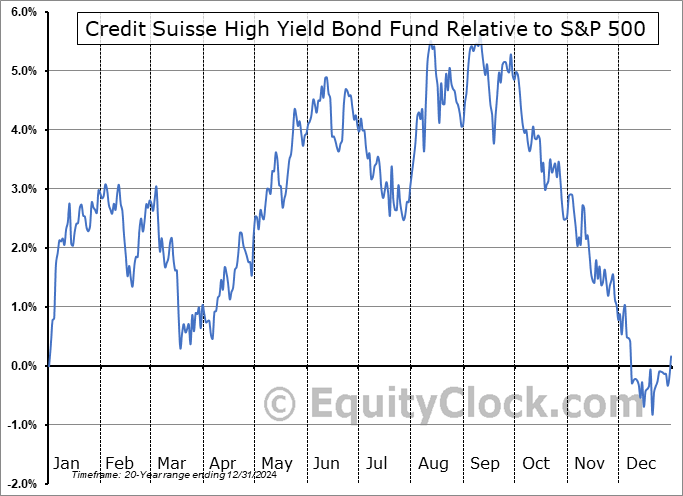 Analysis of the Credit Suisse High Yield Bond Fund (AMEX:DHY) seasonal charts above shows that a Buy Date of December 15 and a Sell Date of March 4 has resulted in a geometric average return of 3.9% above the benchmark rate of the S&P 500 Total Return Index over the past 20 years. This seasonal timeframe has shown positive results compared to the benchmark in 14 of those periods. This is a good rate of success and the return strongly outperforms the relative buy-and-hold performance of the stock over the past 20 years by an average of 7.78% per year.