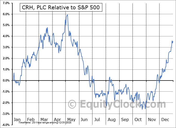Analysis of the CRH, PLC (NYSE:CRH) seasonal charts above shows that a Buy Date of December 8 and a Sell Date of April 30 has resulted in a geometric average return of 7.03% above the benchmark rate of the S&P 500 Total Return Index over the past 20 years. This seasonal timeframe has shown positive results compared to the benchmark in 18 of those periods. This is an excellent rate of success and the return strongly outperforms the relative buy-and-hold performance of the stock over the past 20 years by an average of 7.5% per year.