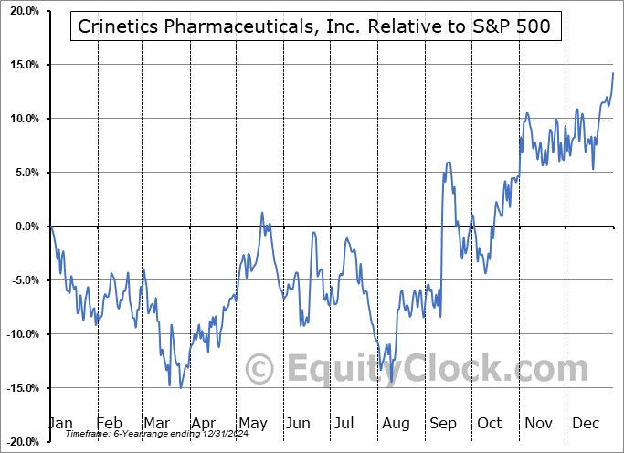 Analysis of the Crinetics Pharmaceuticals, Inc. (NASD:CRNX) seasonal charts above shows that a Buy Date of March 25 and a Sell Date of June 23 has resulted in a geometric average return of 9.39% above the benchmark rate of the S&P 500 Total Return Index over the past 6 years. This seasonal timeframe has shown positive results compared to the benchmark in 6 of those periods. This is an excellent rate of success and the return strongly outperforms the relative buy-and-hold performance of the stock over the past 6 years by an average of 15.87% per year.