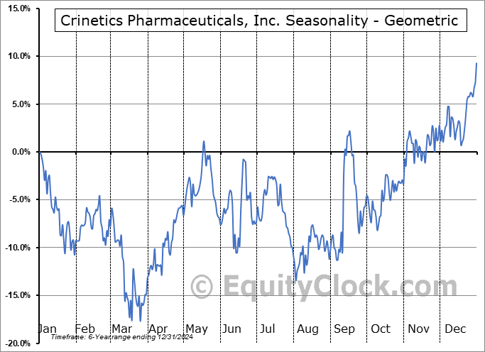 A word of caution: Only 6 years of data is available for shares of CRNX, perhaps insufficient to create a seasonal profile that accurately gauges the seasonal tendencies influencing the investment. Ideally, while 20 years is preferred, at least 10 years of data is required to perform a seasonal analysis that is considered to be reliable for future seasonal periods.